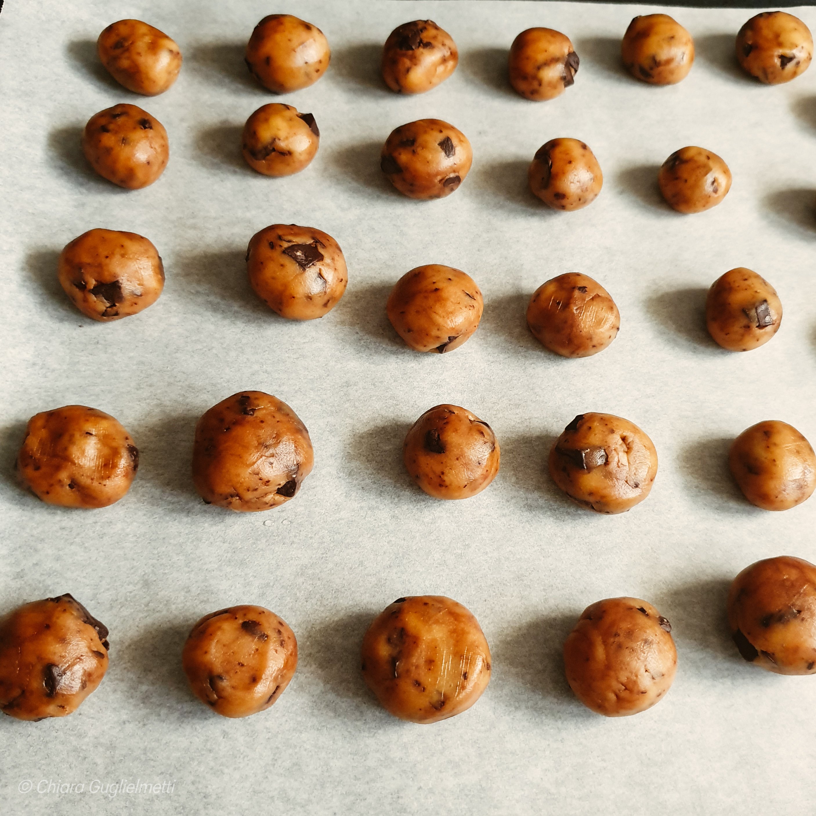 - Disporre i biscotti su una placca da forno, con carta da forno, e cuocere in forno statico preriscaldato a 165°C per circa 15 minuti.
