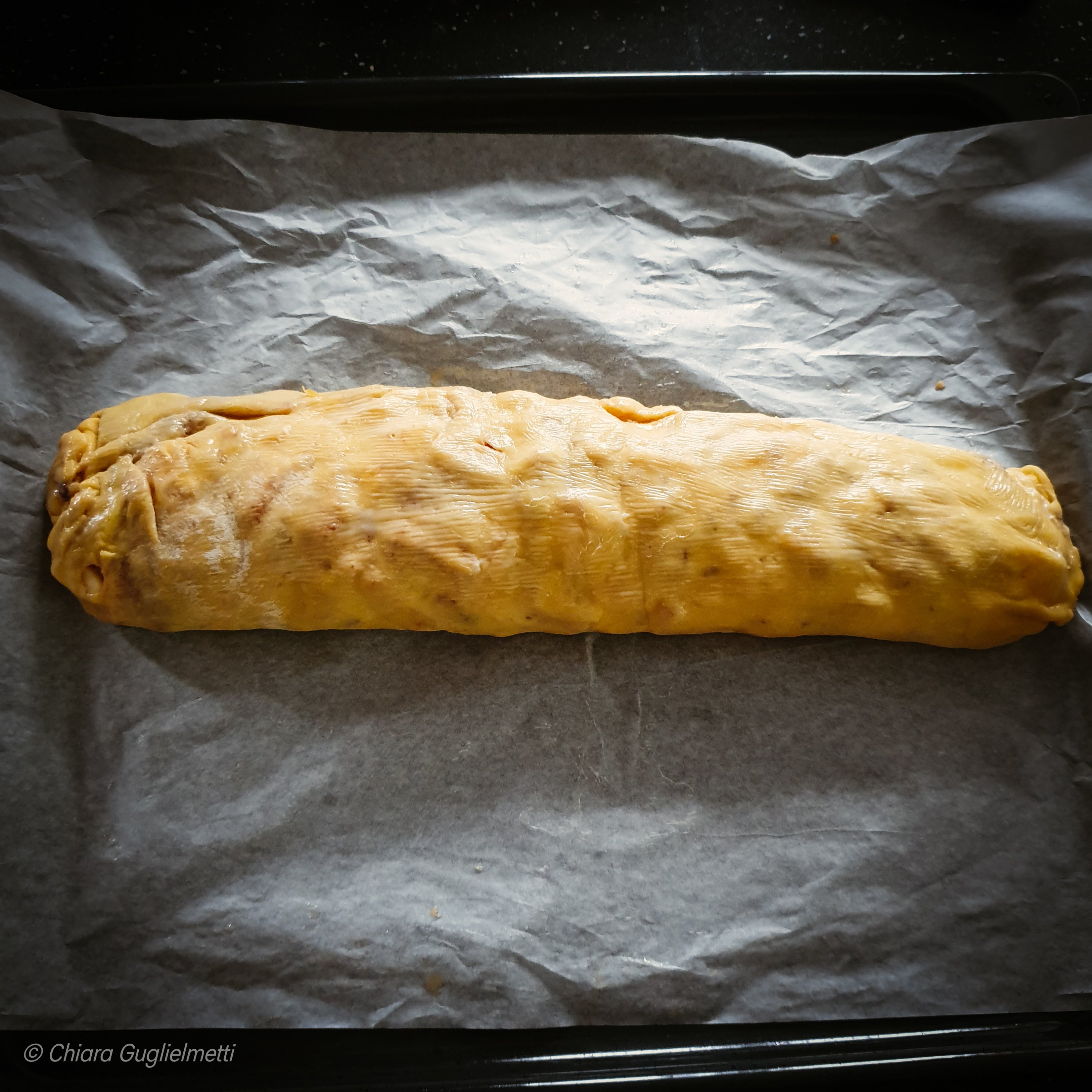 - Stendere i due impasti tra due fogli di carta da forno, dando loro la stessa dimensione e spessore.