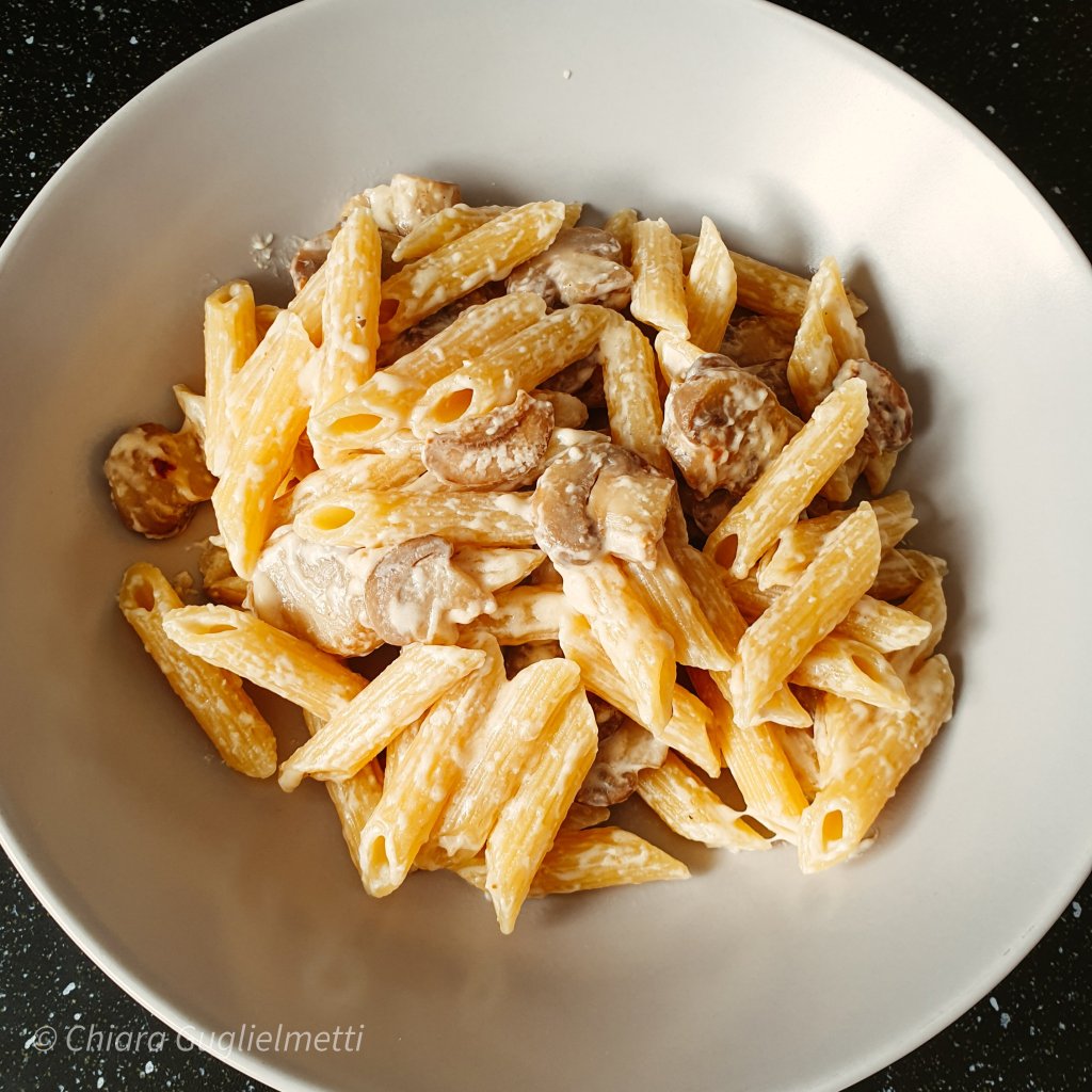 - A fine cottura scolare la pasta e versarla nel tegame per amalgamarla a funghi e panna.