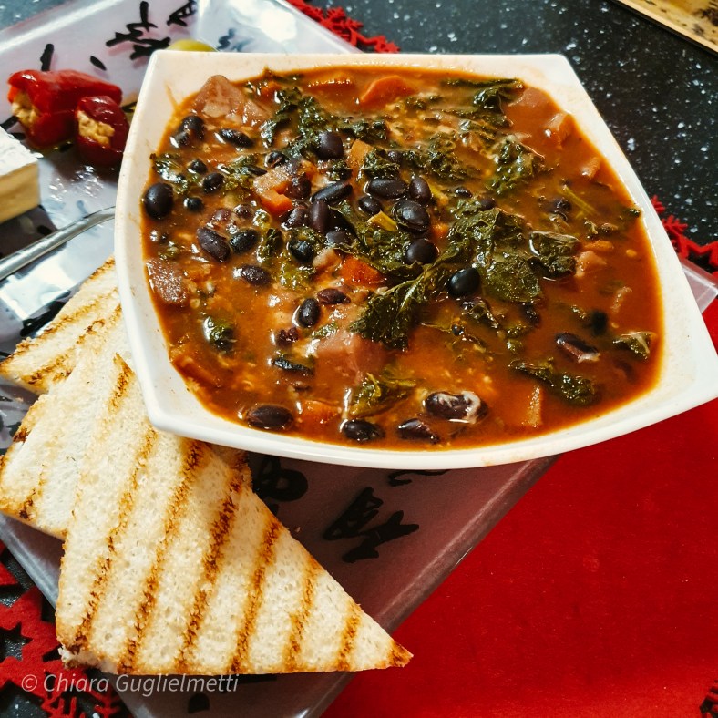 Un piatto nutriente e sano, perfetto per il freddo invernale, facile da preparare. Richiede solo un po’ di tempo di preparazione, per via dell’ammollo dei fagioli e per la cottura, che però potete velocizzare utilizzando la pentola a pressione. Potete accompagnare la ricetta con crostini di pane oppure con pasta o riso…