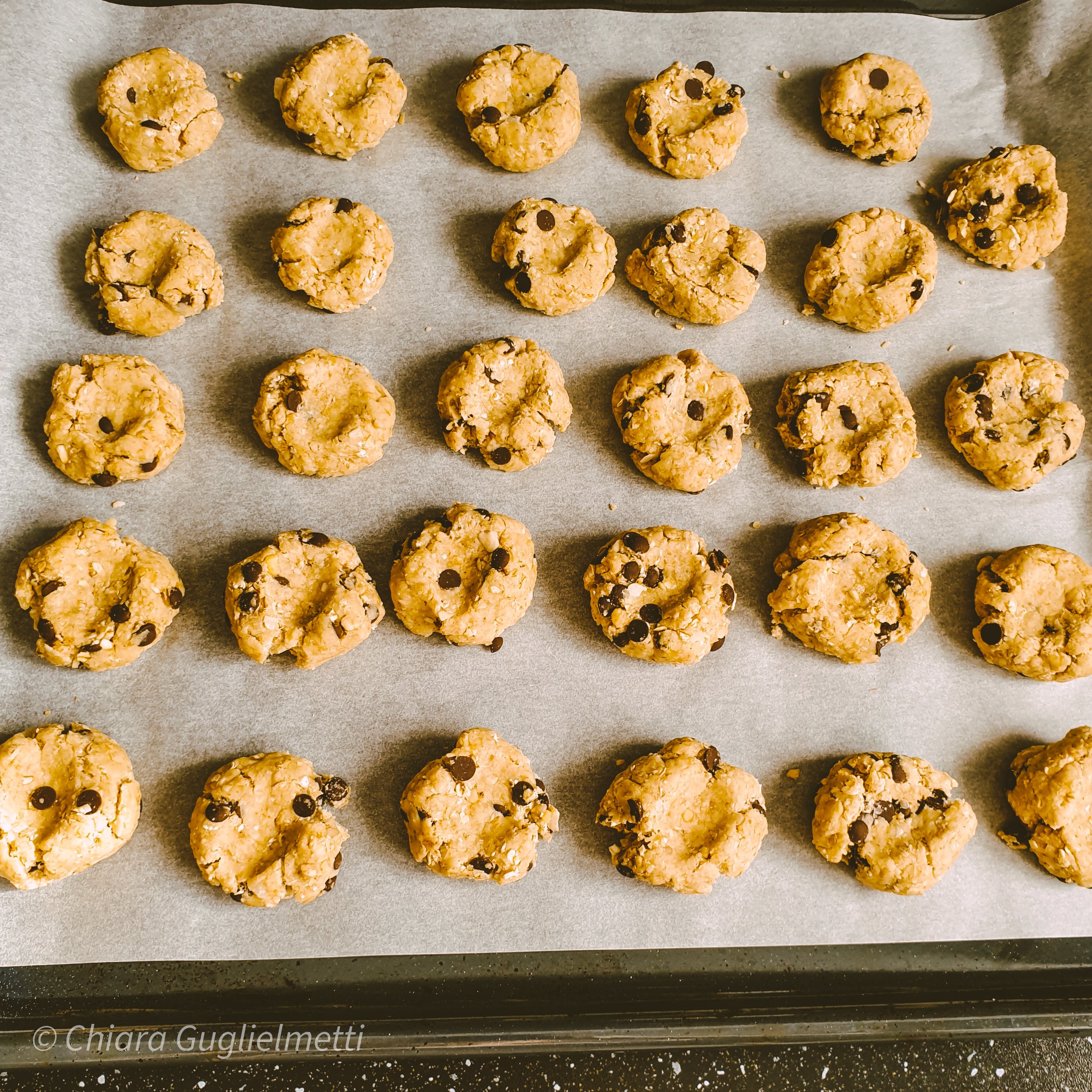 - Disporre i biscotti su una placca da forno, ricoperta con carta da forno, e cuocere in forno statico preriscaldato a 165°C per circa 10-12 minuti.