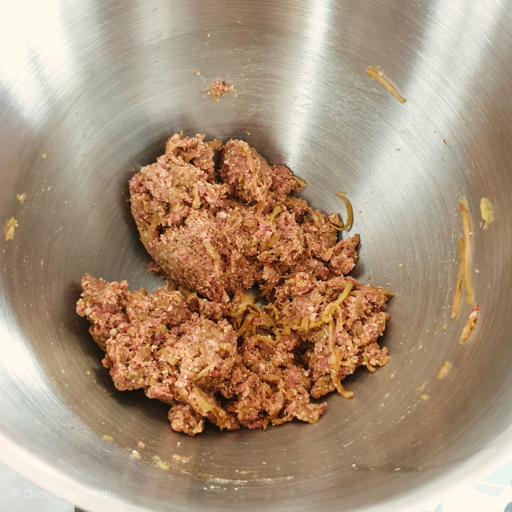- Nel frattempo preparare un ragù veloce di carne. Far soffriggere uno spicchio d’aglio nell’olio, aggiungere la carne macinata e rosolare per alcuni minuti, quindi aggiungere la polpa di pomodoro, aggiustare di sale e cuocere per circa 30 minuti.